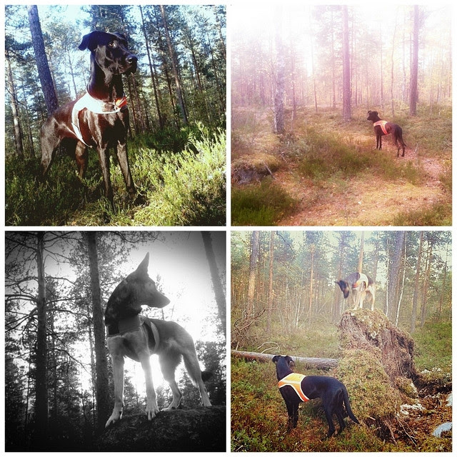Oon opettanut koirille semmosta, että kun ulkona tulee vastaan hienoja kantoja, isoja kiviä tms. niin niiden päälle kun menee kököttämään saa palkkaa. Se on sekä erittäin köyhä temppu että niksi jolla saan ne jotenkin poseeraamaan kameralle.