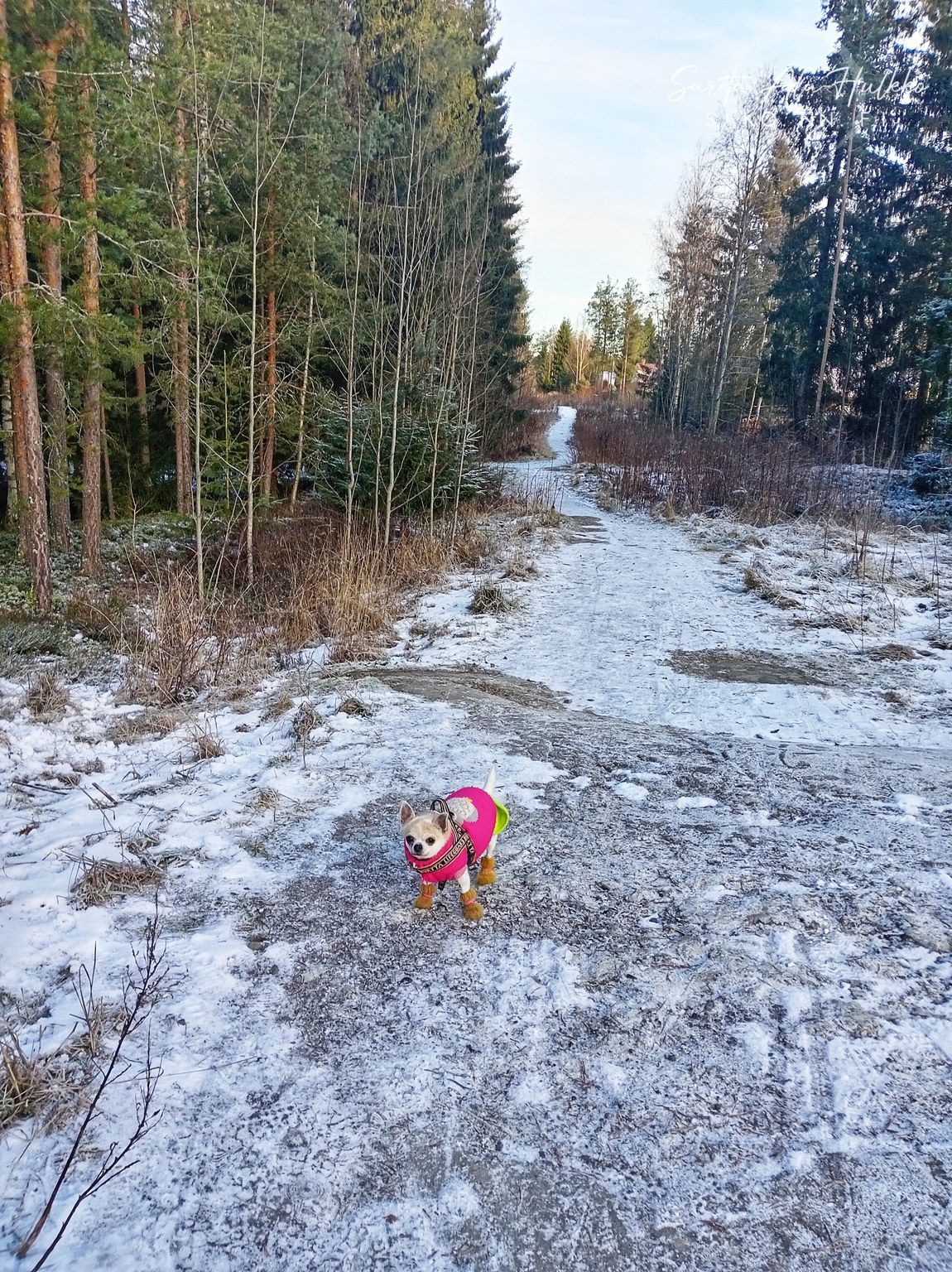 - Kun eka lumikerros tuli ja sitten muuttui jääksi, kickbike lähti talviteloille. W:n ja siskon juoksulenkit jatkuivat entisellään