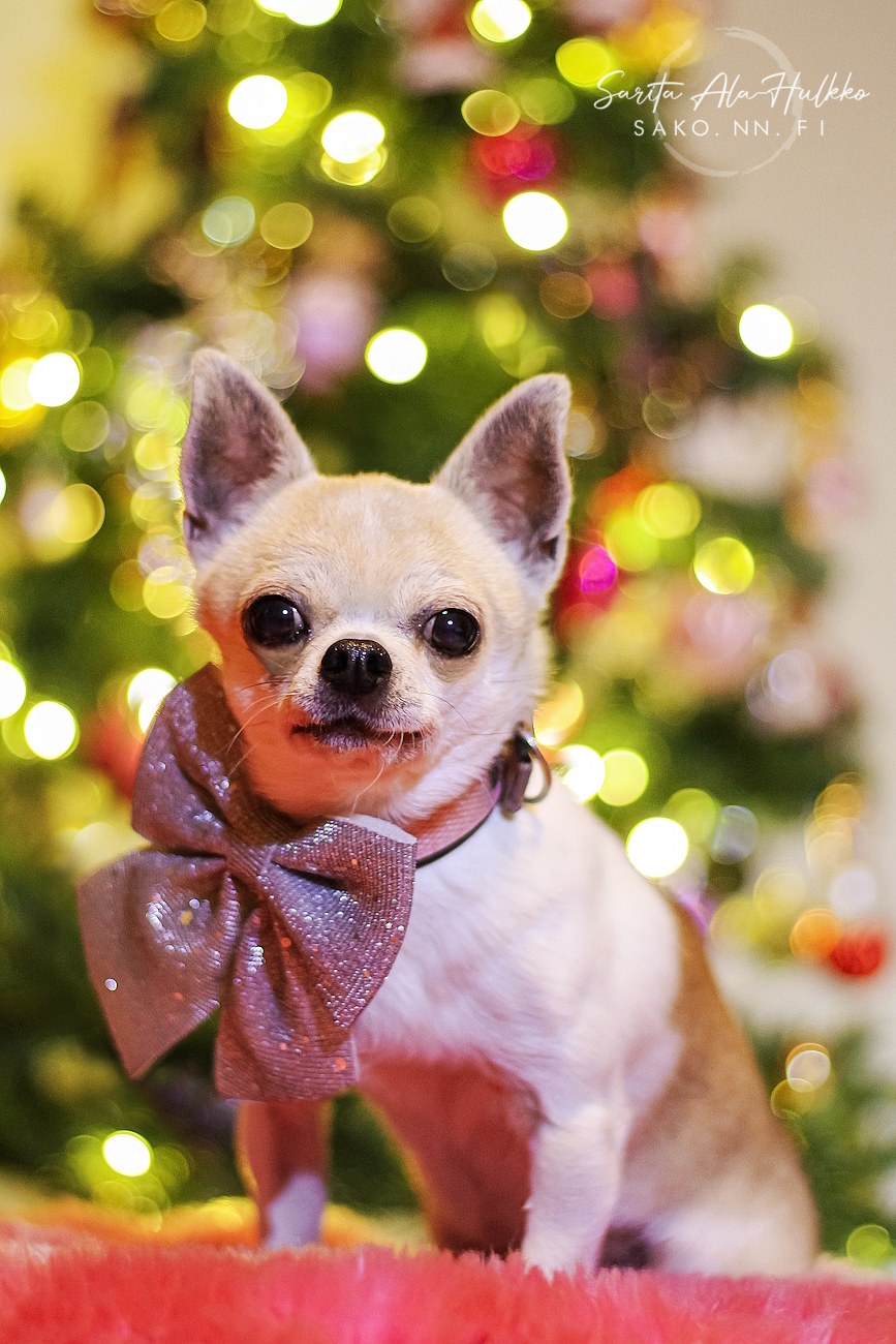 En suostunut ottamaan vihreitä joulukuvia ulkosalla, joten otin sitten koirista kuvat ihan vaan olohuoneessa. Worna kovasti haukottelee näissä otoksissa, ne kun on otettu herran nukkumaanmenoajan jälkeen 🙈 Sai hän tietysti runsaasti palkkaa hyvitykseksi!